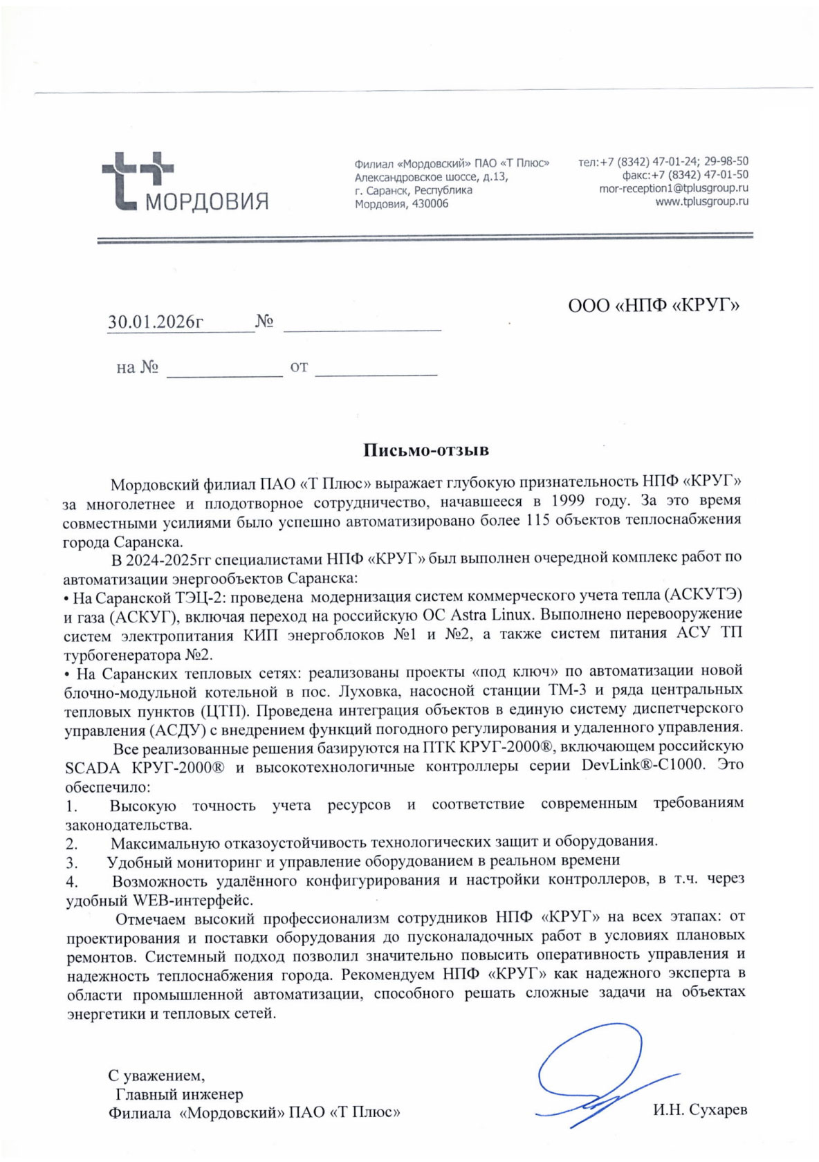 Отзыв о работе АСУ ТП объектов Ульяновской ТЭЦ-1