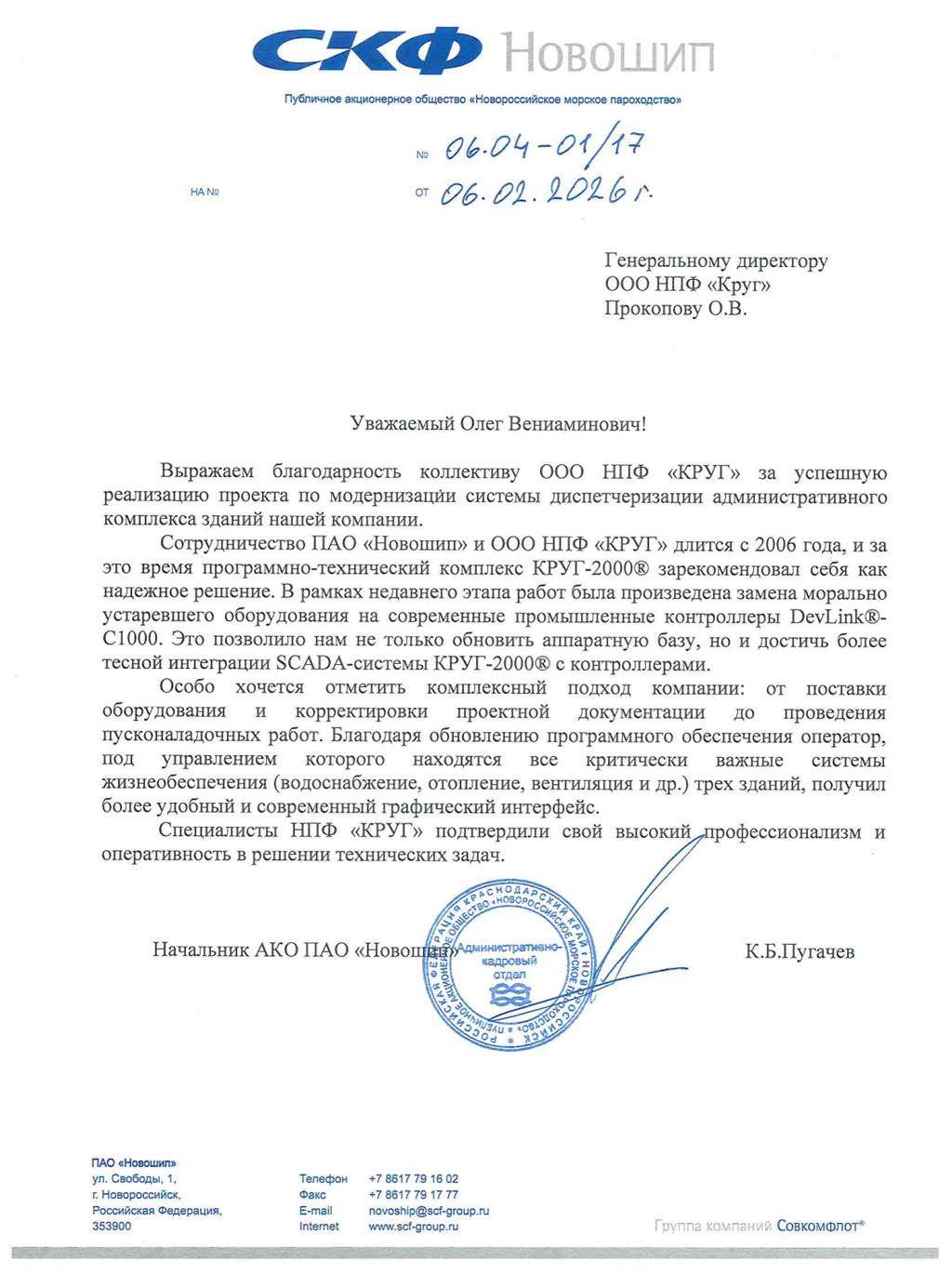 Отзыв о работе АСКДУ систем жизнеобеспечения Административного комплекса №1