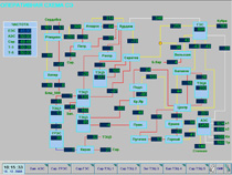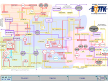 - визуализация на экранах мониторов операторских станций общих мнемосхем с динамической индикацией выведенных на них измеряемых и вычисляемых технологических параметров в цифровом, табличном виде или в виде графиков изменения во времени (трендов)