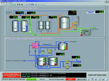 Верхний уровень АСУ ТП установок регенерации метанола функционируют под управлением SCADA-системы КРУГ-2000® и представлены двумя АРМ операторов (каждая система), совмещенных с серверами БД, работающими в режиме 100%-го «горячего» резервирования.