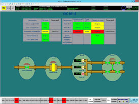 - Предоставление персоналу информации по контролируемым параметрам на мониторах АРМ диспетчеров и инженеров в виде технологических мнемосхем, табличном виде или в виде графиков изменения параметров во времени (трендов)