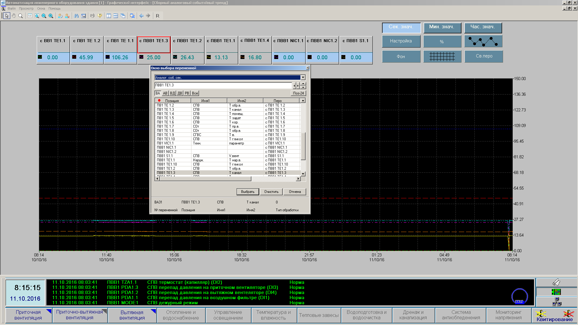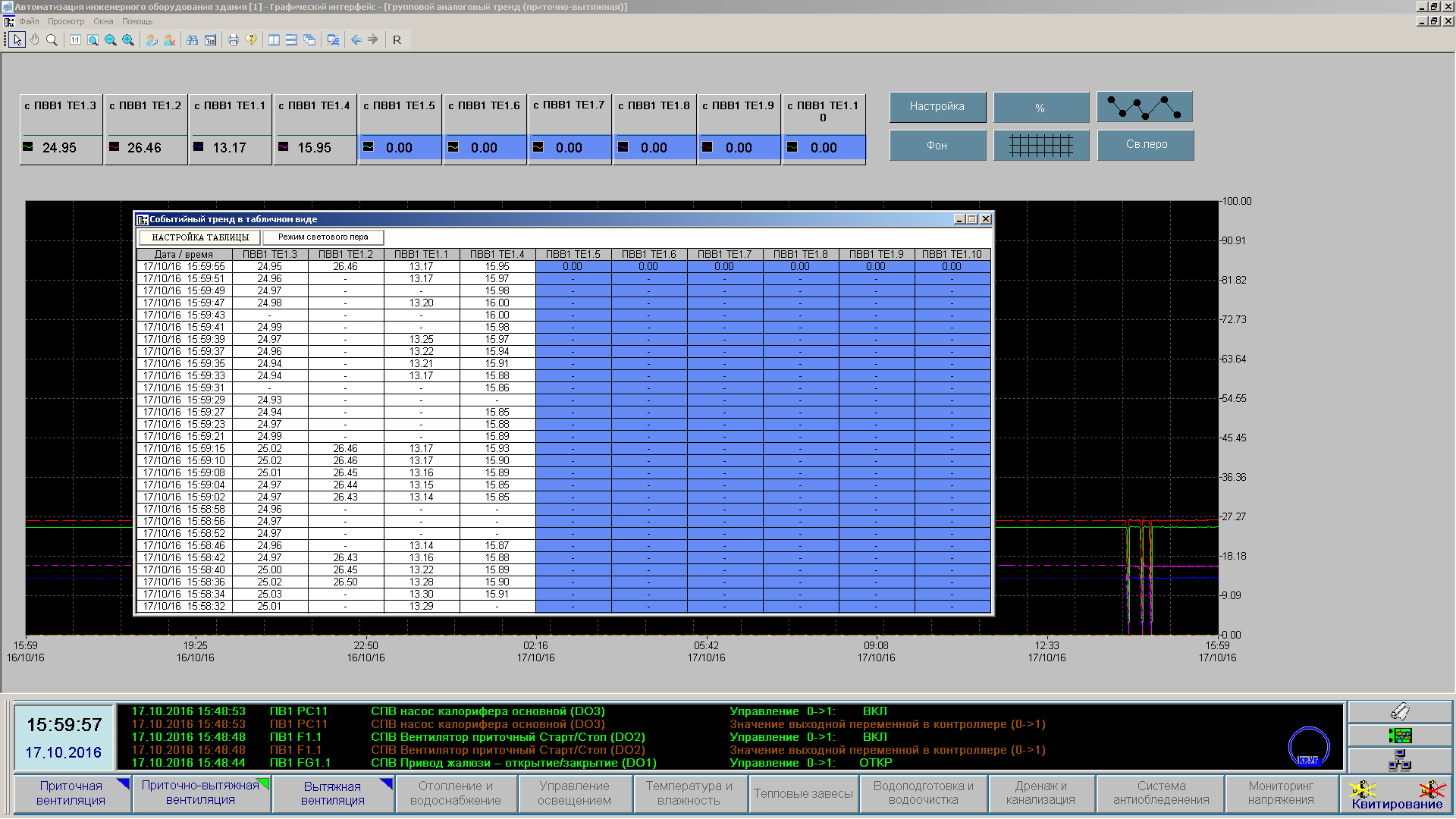 - Создание полноценной системы диспетчерского контроля и управления с возможностью непрерывного слежения за работой вентиляционной системы