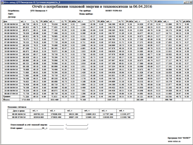 - автоматическое формирование ведомостей учета теплоносителя и тепловой энергии за отчетные интервалы времени по каждому направлению их использования