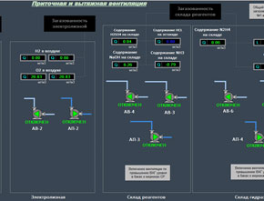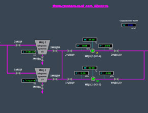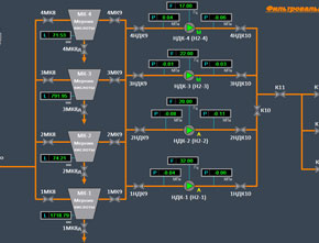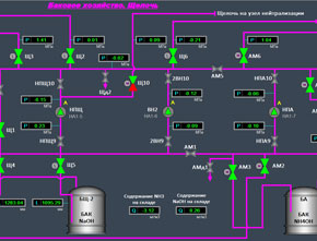 - Сбор и отображение на мониторе автоматизированного рабочего места (АРМ) оператора данных от различных датчиков и приборов, данных о состоянии запорно-регулирующей арматуры, насосов и другого оборудования
