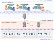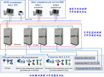 АСУ ТП котла представлена четырьмя иерархическими уровнями.