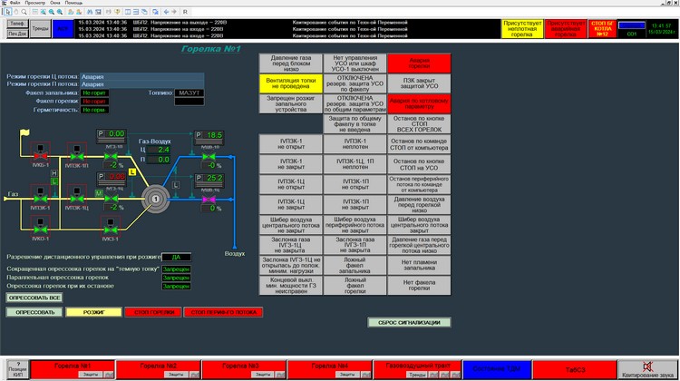 Технологические защиты. Система автоматического ввода и вывода защит обеспечивает возможность нормальной эксплуатации технологического оборудования во всех эксплуатационных режимах, включая пусковые, без вмешательства персонала в работу защит. Интерфейсная часть подсистемы технологических защит и блокировок выполнена в удобном для понимания алгоритма виде и позволяет быстро и оперативно разобраться в причинах действия защиты или блокировки.