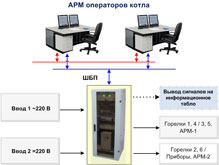 Объекты: арматура газооборудования горелок, шкафы управления горелками (ШУГ), приборы технологических защит, автоматизированные рабочие места машиниста котлоагрегата.