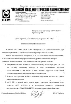 Научно-производственная фирма «КРУГ» – крупная многопрофильная инжиниринговая компания в области промышленной автоматизации объектов многих отраслей экономики, в том числе объектов, относящихся к генерации, транспортировке и распределению теплоресурсов.