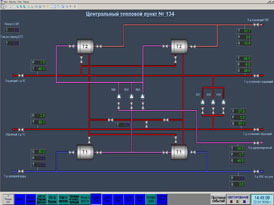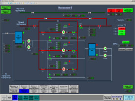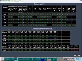 - Сбор и отображение информации о ходе технологического процесса, состоянии оборудования насосных станций и ЦТП на мониторах автоматизированных рабочих мест диспетчерского пункта, в т.ч.: