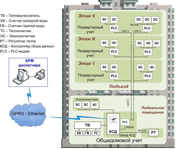 - подомовой учет тепла, холодного и горячего водоснабжения