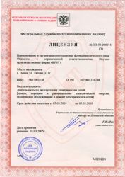 Все сертификаты и лицензии, выданные НПФ «КРУГ» Вы можете посмотреть здесь.
