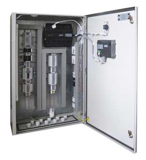 Шкафы управления были разработаны на основе типового технического решения – АСУ ТП тепловых пунктов. В качестве контроллерного оборудования был применен промышленный контроллер DevLink-C1000 с модулями ввода-вывода серии DevLink-A10 из состава программно-технического комплекса КРУГ-2000®.