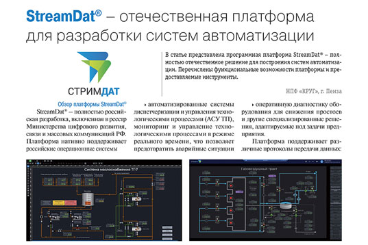 В статье журнала «Информатизация и системы управления в промышленности» приведен обзор платформы цифровизации StreamDat®, обеспечивающей инновационный подход в управлении предприятием.