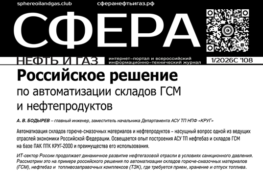 Март 2026 / Российское решение по автоматизации складов ГСМ и нефтепродуктов – статья в журнале «Сфера Нефть и Газ»