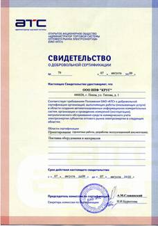 НПФ «КРУГ» в 4-й раз, начиная с 2005 г., успешно прошла процедуру сертификации в ОАО «Администратор торговой системы оптового рынка электроэнергии».