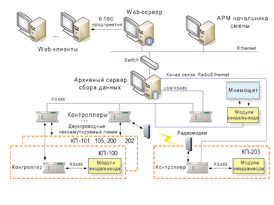 - Возможность хранения архивов на контроллере и наличие телемеханического канала связи, обеспечивающего передачу данных по медленным и неустойчивым линиям связи (для создания систем диспетчеризации на базе СКАДА системы с РСУ)