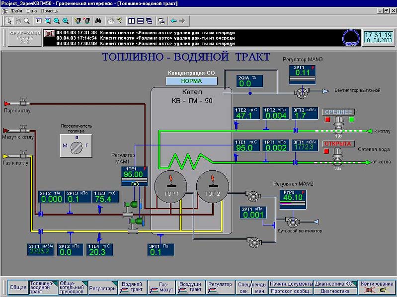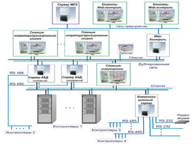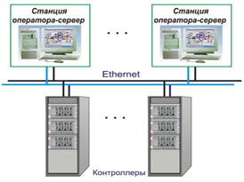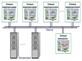 - Обмен с контроллерами как оперативными, так и архивными данными (тренды) по высоконадежному единому скоростному протоколу