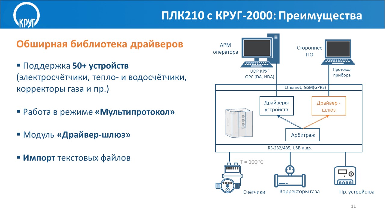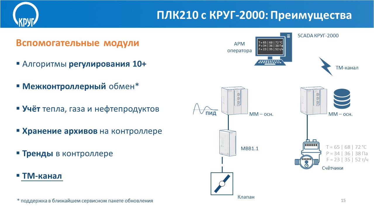 Преимущества совместного использования ПЛК210-KR и SCADA КРУГ-2000
