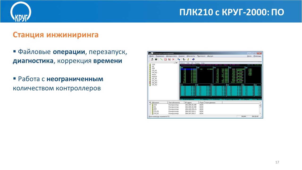 - Сетевая загрузка программного обеспечения контроллера, online-диагностика контроллера и его модулей