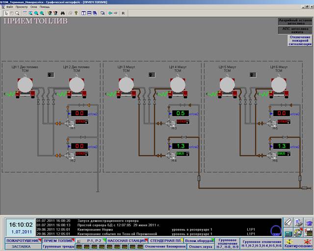 АСУ ТП склада нефтепродуктов судового сервисного центра ООО «БТОФ – Терминал» функционирует в полном объеме.